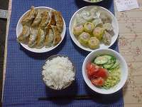 晩ごはんは餃子、シュウマイをいただきました。