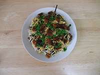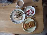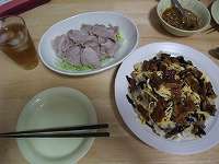 7月26日 土曜日朝ごはんは丸いパン、ベーコンエッグ、フルーツ入りヨーグルト、ミルクティをいただきました。お昼ごはんはリクエストに答えてもらい、ちらし寿司をいただきました。穴子が載っていて美味でした。途中でおなかが空きすぎてぱんこに催促を入れてしまいました。晩ごはんは穴子入りちらし寿司と豚冷しゃぶのピリ辛中華だれかけをいただきました。