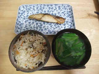 晩ごはんはひじきや鶏肉などが入った混ぜごはんとサワラをいただきました。