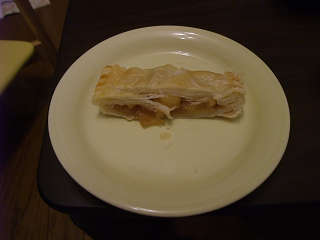 2009/12/8 [Tue] 免許更新朝ごはんはベーコンエピ、ミルクティー、バナナとパイン入りヨーグルトをいただきました。朝から免許更新の講習会に行って来ました。スピード違反と右折禁止の侵入で捕まっていたので長い講習を受け、期間も短い3年の免許になってしまいました。お昼ごはんは自宅に戻り、餃子をいただきました。美味しいのですが、食欲があまりなく、それほど食べれません。晩ごはんはカップ麺の焼きそば一平ちゃんをいただきました。家に帰ると、自家製のアップルパイがありました、とても美味しく頂ました。