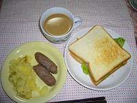 朝ごはんは手作りソーセージとハムレタスサンドイッチをいただきました。