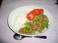 牛肉とレタスの甘辛たれ重をいただきました。美味~♪