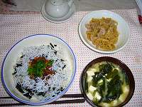 4月28日 土曜日朝はお好み焼きを作っていただきました。お昼ごはんはしらすとイクラのどんぶりをいただきました。晩ごはんは豚肉にちょっと衣をつけてサラダ風ちょいピリ辛味をいただきました。うまく説明できません。