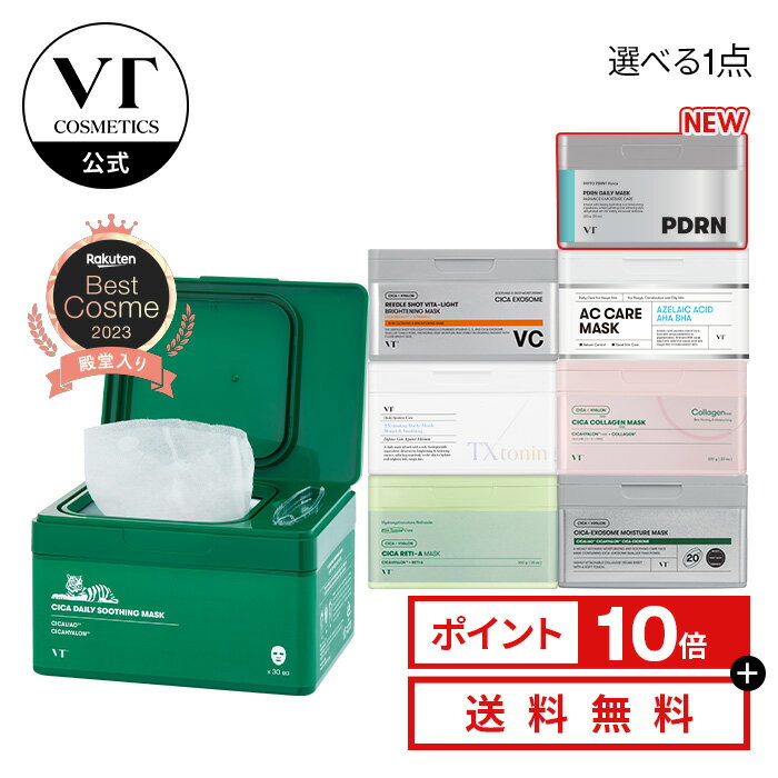 なぜ、VTのシートマスクが人気なのか?VTのシートマスクって、肌に優しくてめっちゃしっとりするから好きなんやけど、こんなにお得なセットがあるなんて知らんかったわ。・高麗人参由来の成分配合で、肌に潤いを与えます。・植物由来のヴィーガン生地を使用しており、肌への刺激が少ないです。・毛穴より小さいカプセルが、肌の奥まで美容成分を届けます。1/19 0時から\ポイント10倍+送料無料/【新発売】【 VT 選べる デイリー スージング マスク 全8種】 PDRN CICA TXトーニング コラーゲン レチノール ビタミン ACケア アゼライン酸 トラネキサム酸 サリチル酸 敏感肌 乾燥肌 シートマスク トラブル肌 大容量 パック楽天市場楽天1位★【組み合わせ自由1~3個】 VT DAILY MASK 30枚入り [4種] CICA / VITAL / RETI-A / COLLAGEN【正規品】ブイティ 公式 レチA レチノール シカ コラーゲン バイタル パック 韓国パック フェイスパック マスクシート シートマスク シカマスク パック 売れ筋楽天市場【48時間限定】\35%OFF+ギフト+送料無料/【VT公式】【2種セット】【 スージング シート マスク セット ( CICA / ACケア / レチA / コラーゲン / エクソソーム / ビタライト / TXトーニング / ヒアルロン ) 】 顔パック CICA コラーゲン アゼライン酸 ビタミン 保湿楽天市場VTCOSMETICS(ブイティコスメテックス) シートマスク 箱マスク スキンケア (1.CICA デイリースージングマスク)Amazon(アマゾン)