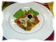 やっぱり我慢できなくて今日のフレンチは先にご紹介します!皆さーーん!!今日はお料理教室に行ってきました。もう、もう。。。いつもいつも美味しいのですが、今日のは特に美味しかった!!本当にこの先生は天才だぁ~って思います。フランス人で日本語ペラペラの先生なのですが、とにかく何を食べても味が上品で美味しい。はずれというメニューは未だかつて一品もありません。今月は夏らしいメニューを揃えて頂いたみたいですが、どれもこれもお昼からワインを飲み、美味しさにうなってました!!感激~~。私も近いうちに挑戦しますよ~!!
