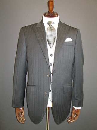 上のスーツにグレイのベストをプラス