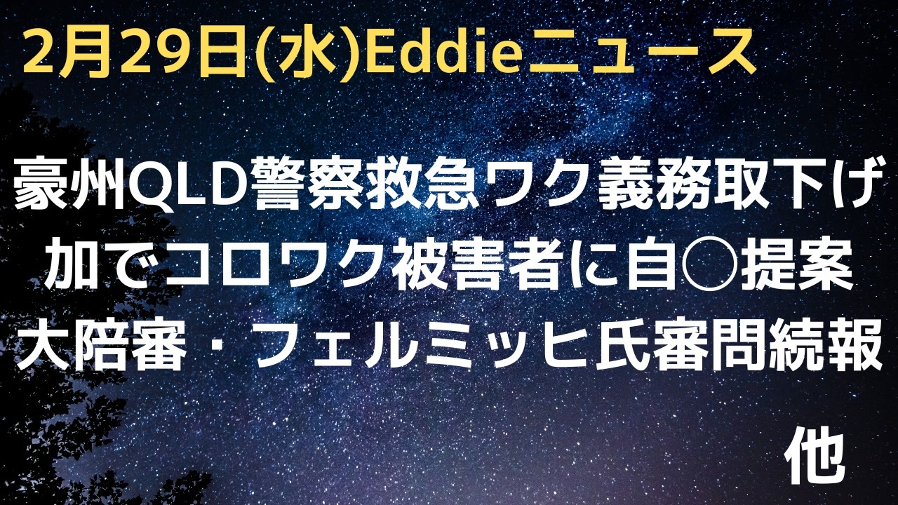 豪州QLD州で警察救急のワク義務が取り下げに