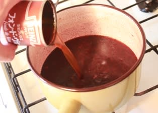 フォンドボーを加え 一度沸騰させアクを取る。 弱~中火で煮詰める。
