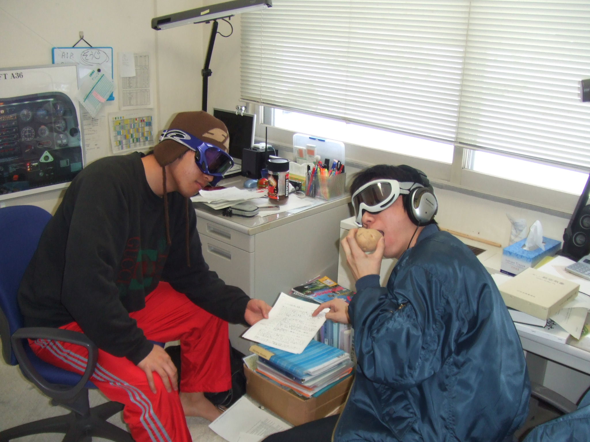 一階に下り、年齢層の高い2号室では計器パネルを机の前に置き、パイロット訓練生であることを一秒たりとも忘れない姿勢のぢゅんぢとうめ
