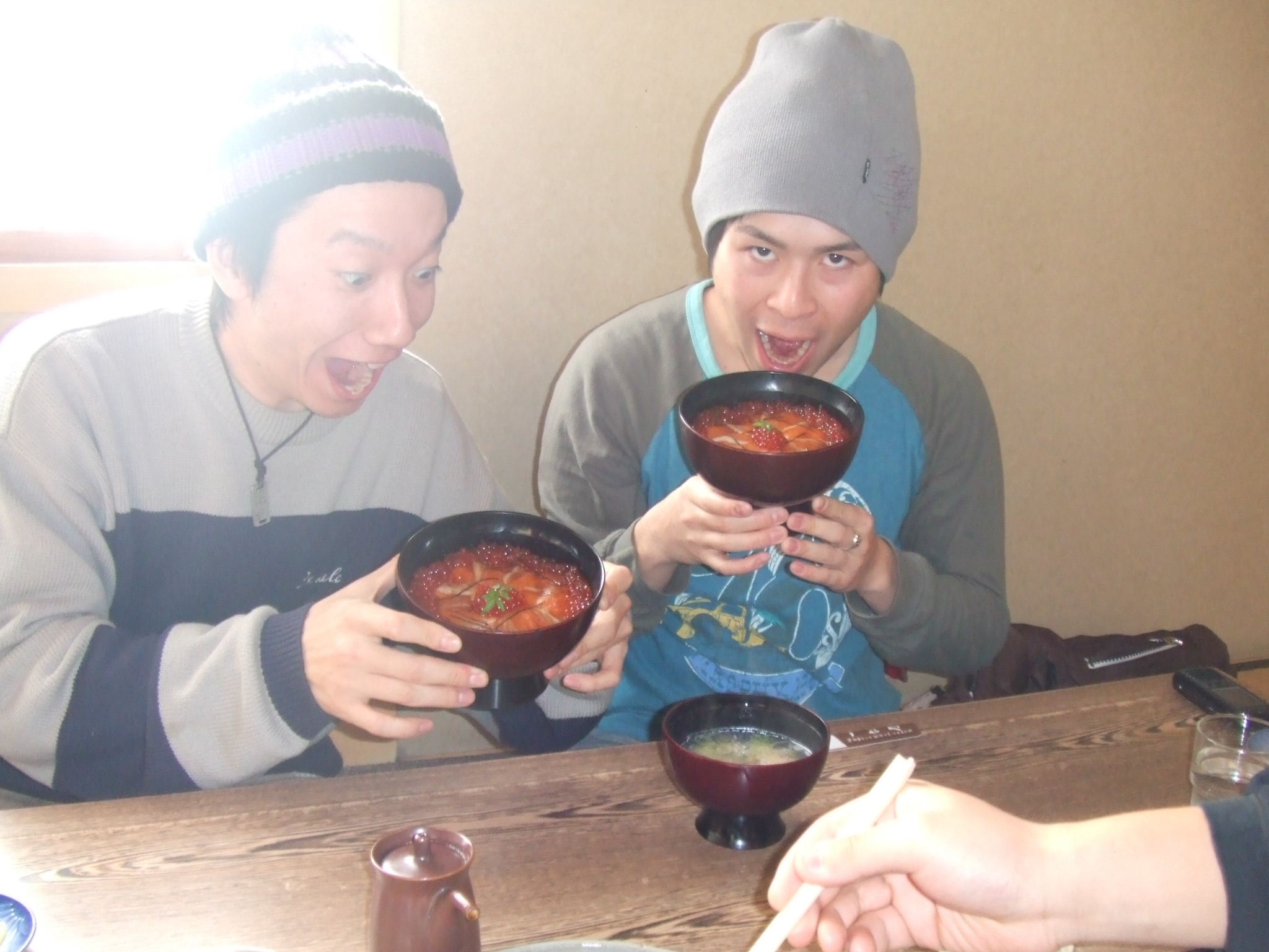 途中野生のエゾシカ(哺乳類・偶蹄目・シカ科)を、空高く舞う天然記念物オオワシ(鳥類・タカ目・タカ科)を目撃し、海岸線では北極から流れ着いた流氷を目にするもやっぱりスルーし、ぼく達(哺乳類・霊長目・人科)は遅い昼食にあり付くべく知床料理一休屋に駆け込みました。