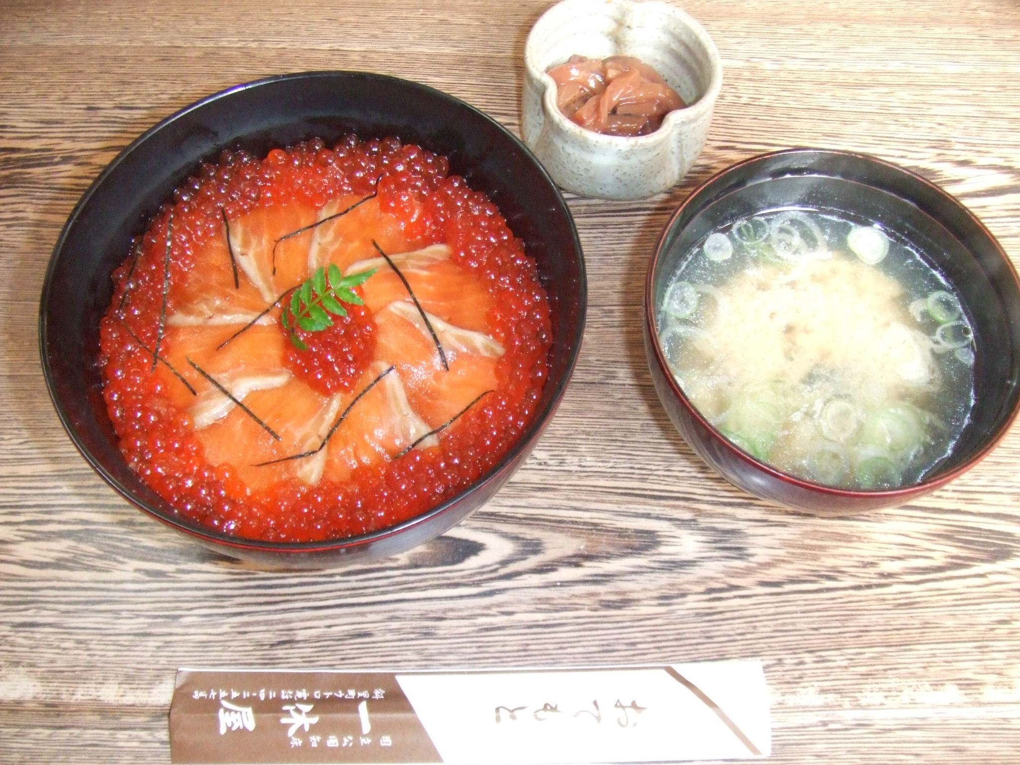 これら多くの著名人を絶句させた自慢の鮭親子丼を当然のごとくぼくらも絶句しながら堪能したのでした