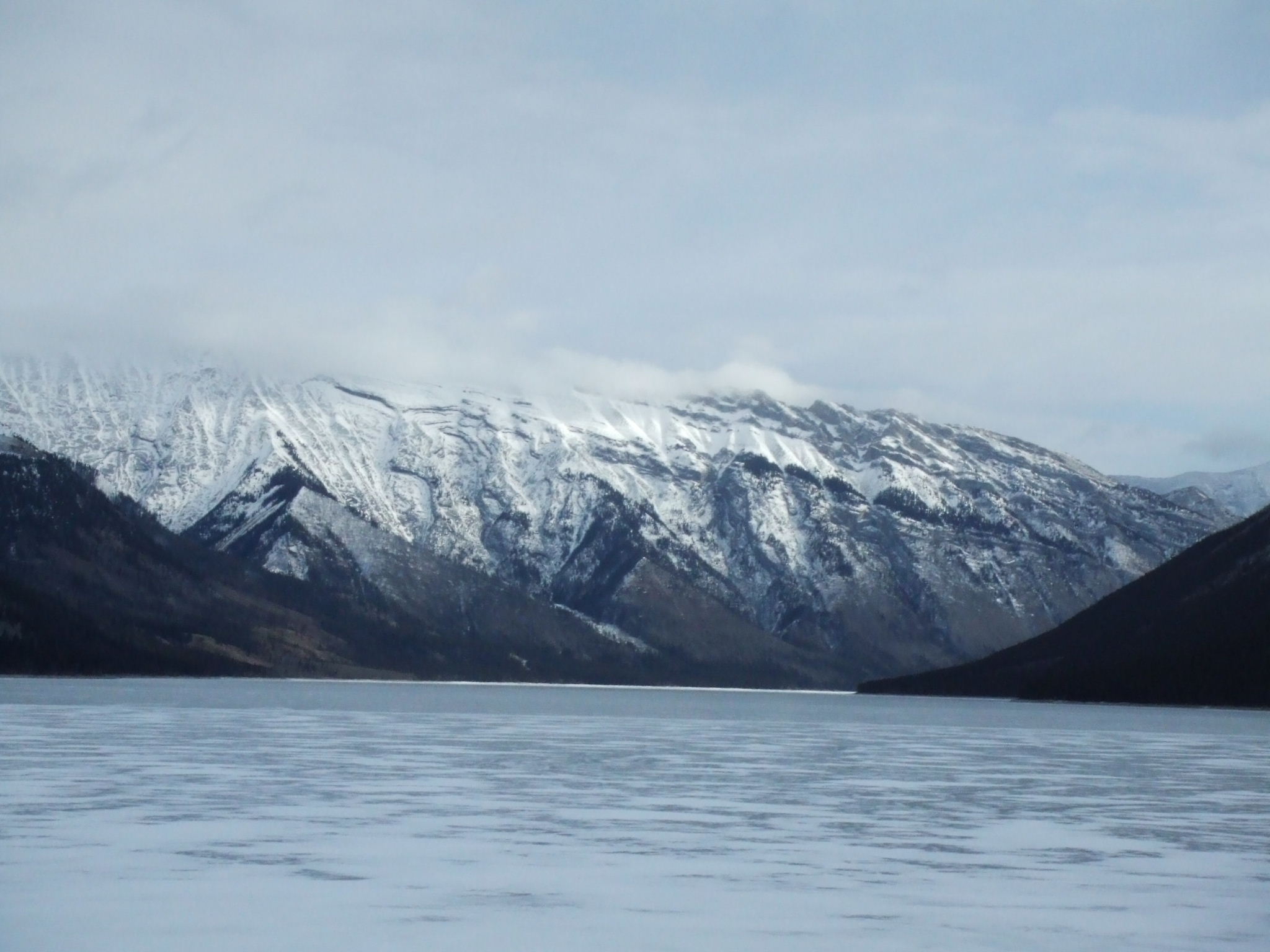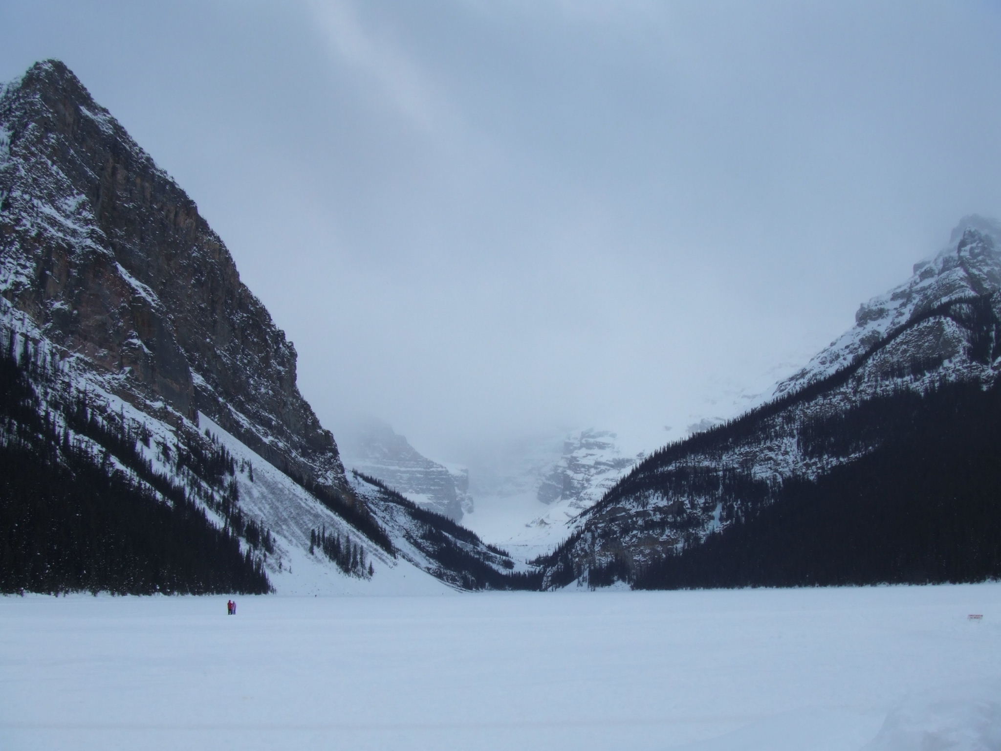 普段はエメラルド色をした湖面もやはり凍結中。湖水の向こうには永久氷河のロッキー山脈。神秘的な眺望を目の前にすると、カナディアンロッキーの魅力を一望の下に理解できる。この湖上でアイススケートやホッケーを楽しむ子供達を見て、冬の楽しみ方を知るカナダ人らしさを感じる。