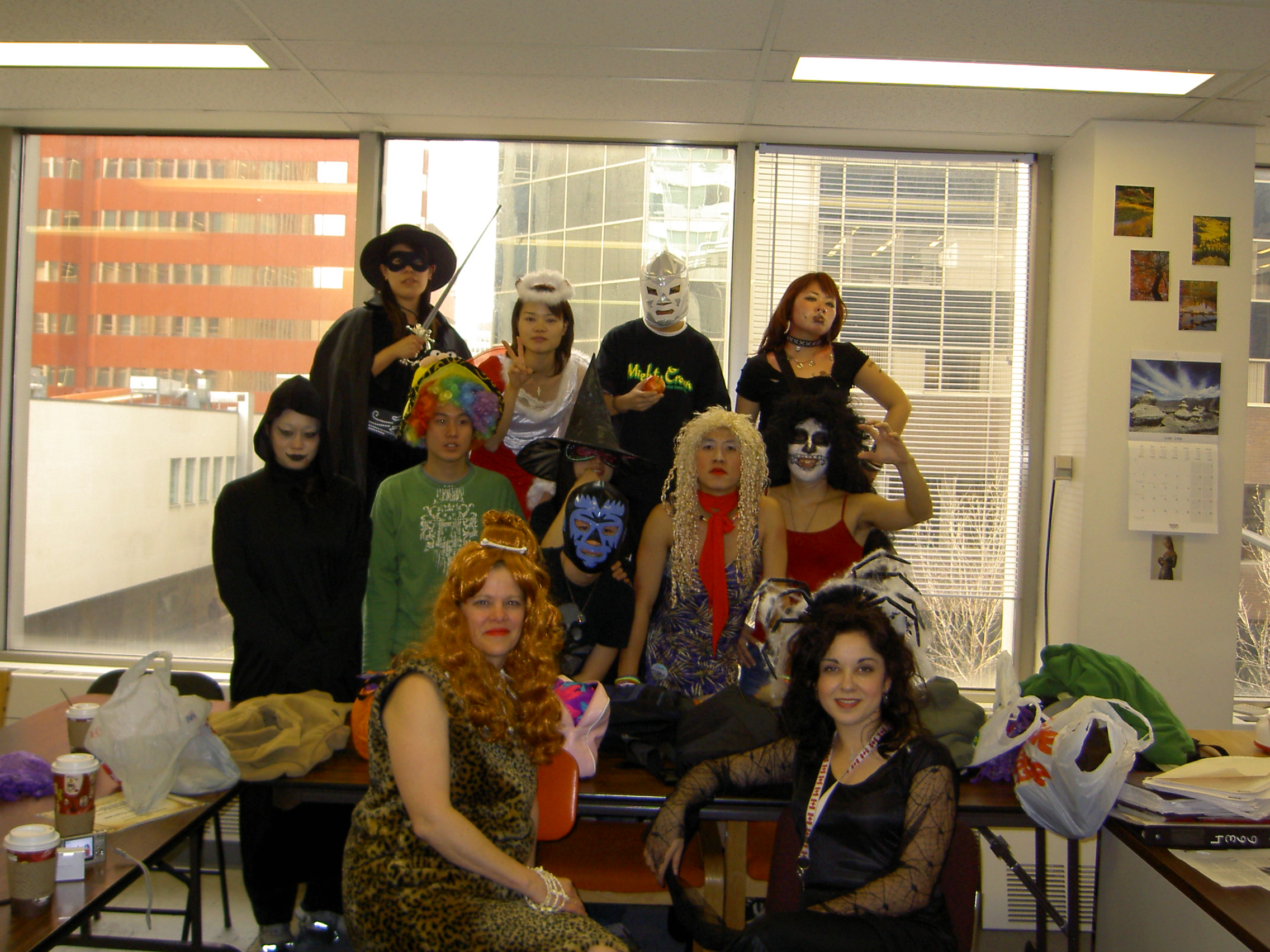 Halloween当日、うちの学校は午前授業が休みになりパーティーが開かれました。皆思い思いのコスチュームをまとい、中でもアジア人の仮装は度を越え過ぎ、はしゃぎすぎ
