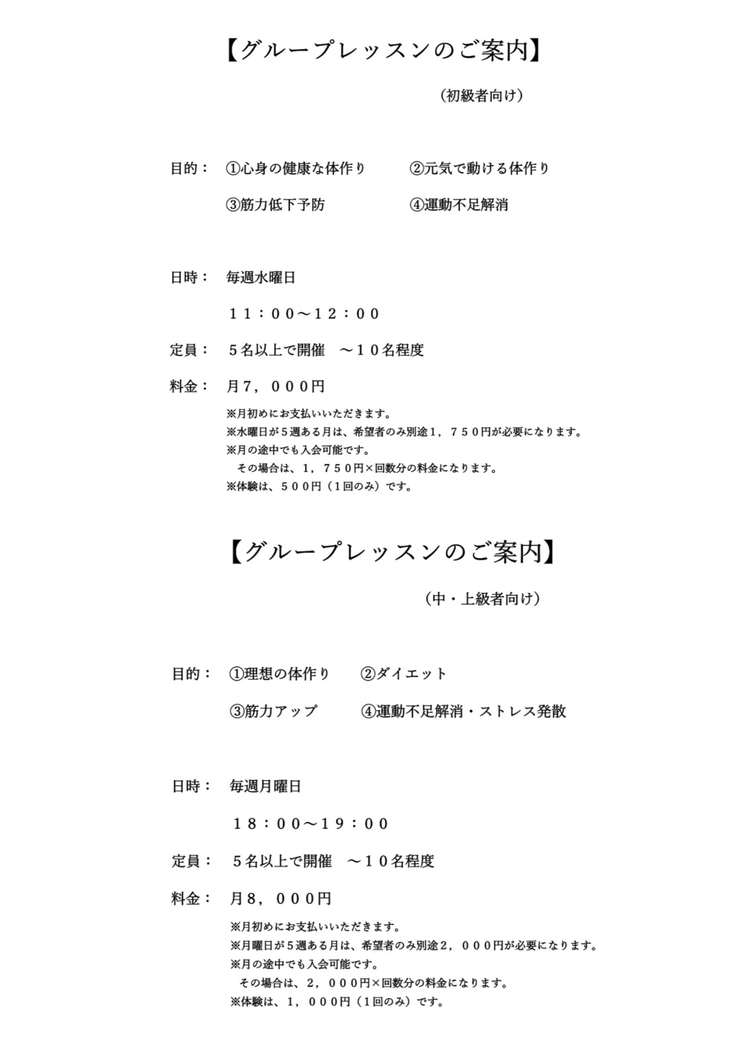 料金は、ホームページの「料金・コース」の欄をご覧ください。