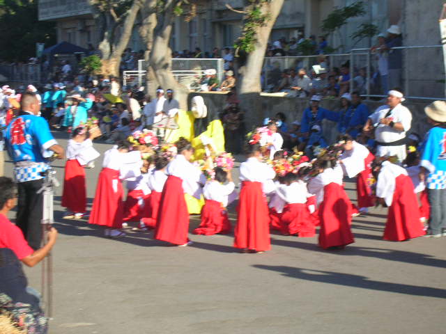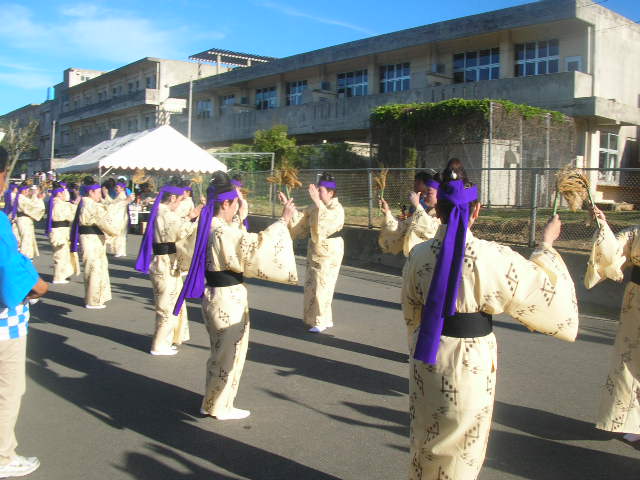 ○豊年祭○ 年中行事の中で、正月・盆祭と共に三大行事の一つである。 豊年祭は二日間にわたり各御嶽(ウタキ)において行われる。 1日目を「オンプール」、2日目を「ムラプール」と呼んでいる。 ・「オンプール」 各御嶽で神司(カンツカサ)、神主(カマンガ)、役者(ブサ)、氏子によって供え物をし、 豊作を神に告げ、感謝を捧げて祈願する。その夜は「夜篭(ユウグムリ)といって、 司、神主、氏子は御嶽に宿る(宿泊する)。また、「親客(ウヤシン)」といって、部落 代表者、公民館長、総務部長が各御嶽をまわり、お酒を供えて豊作を祈願する。 ↑御嶽。神聖な場所で、地元民以外は勝手に入ってはいけないようだ。 入れたとしても、きちんと礼儀を守ることである。 ・「ムラプール」 祭りで最も盛り上がる。旗頭、入子太鼓、ミルク踊、与那覇節舞踊、世迎い、 ツナヌミン、綱引が行われる。詳細は、【3日目】1)豊年祭本番にて。 (参考文献:大浜村誌(平成13年発行)) ○オヤケアカハチ○ 八重山の生んだ三大スターの一人とも言われる。(他に「大濱信泉」氏、「具志堅用高」氏。) 石垣島で農民を苦しめながら島を統一しようとした長田大主に対し、農民を率いて抵抗した リーダーこそがオヤケアカハチである。残念ながら、アカハチは国王によって派兵された兵に よって討たれてしまう。しかし、島の農民の英雄として、現在でも名誉を称えられている。 (参考文献:沖縄タイムズ 2008年4月11日付け) |
