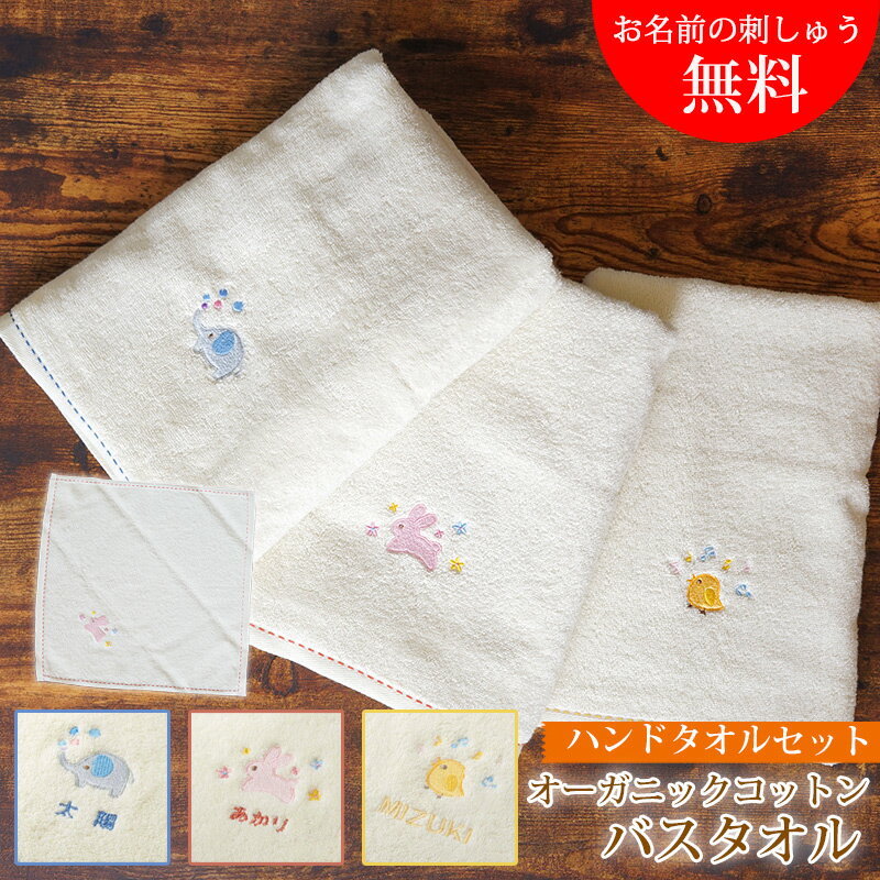 【出産祝い 名入れ】オーガニックコットン バスタオルとハンドタオル(ウォッシュタオル)2点セット(送料無料)新作商品【名前入り 刺繍 育児グッズ オーダーメイド スタイ バスタオル フード付き 動物(うさぎ ぞう ひよこ)オーガニックタオル】【あ2】 楽天市場 4,499円