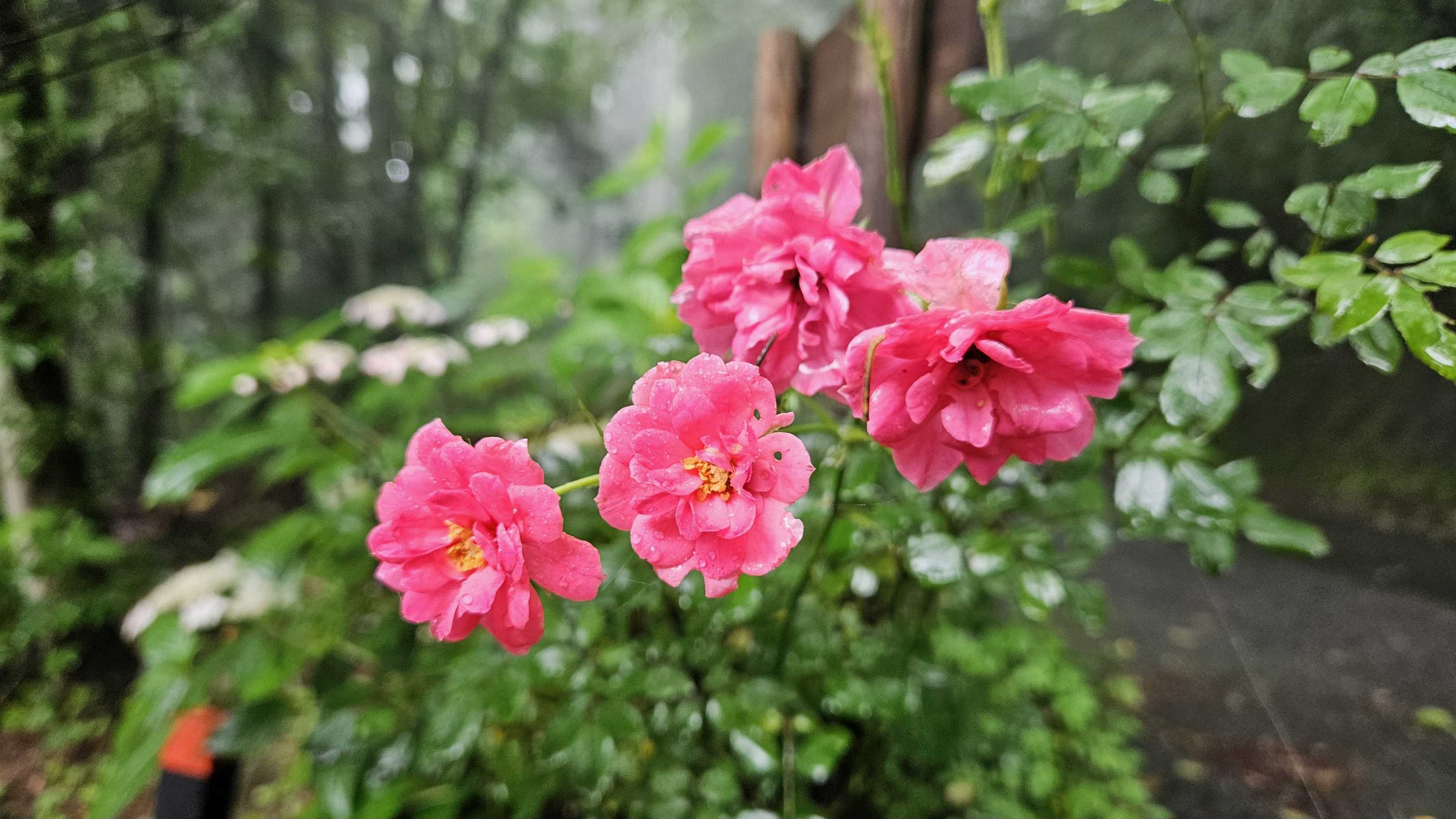 ここのところ梅雨が戻って来た感じで、軽井沢のうちは霧の中ということが多いですが、バラが咲き始めてます。