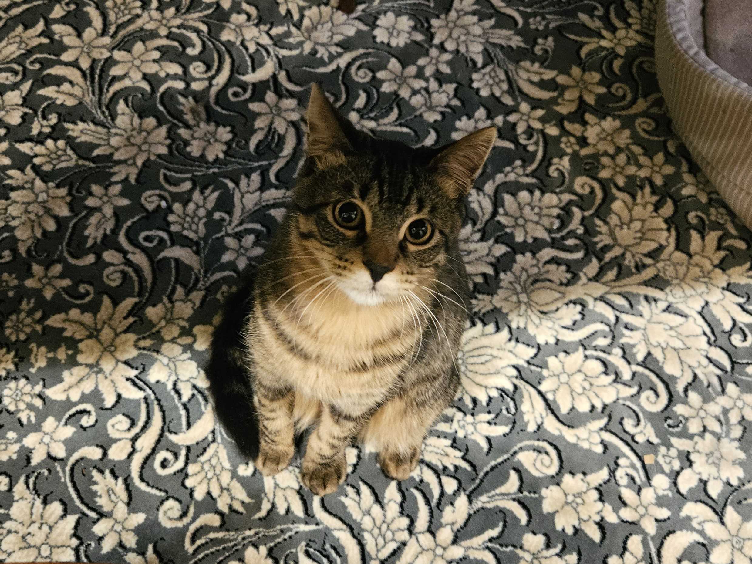 何もない壁を登ってしまうので、保護するためのカバー?的なものを壁に貼ってみましたが、ご覧のあり様。。。ま、いいか
