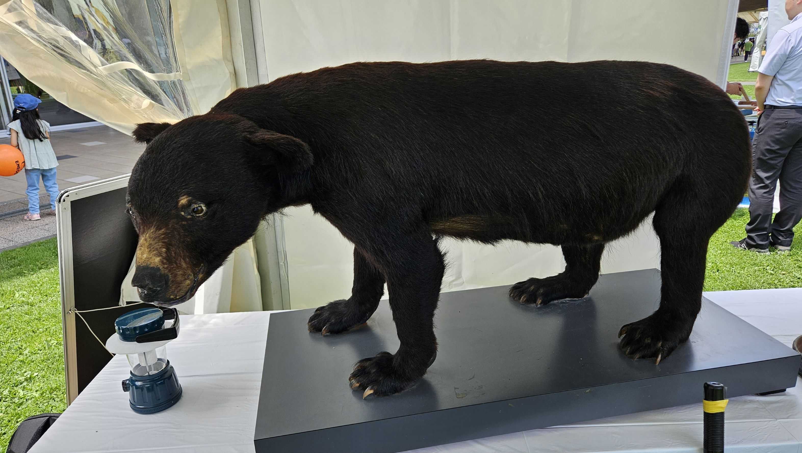 軽井沢町のブースにいましたよ。10歳のメスのはく製だそうです。