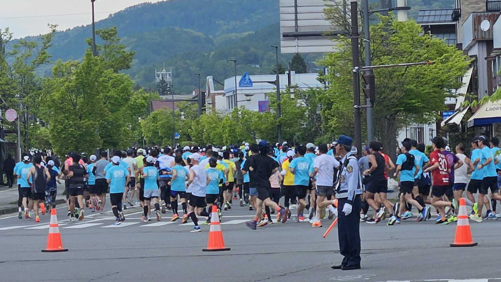 そういえば、この前の18日の日曜は軽井沢ハーフマラソンでした。駅前の交差点で遭遇。