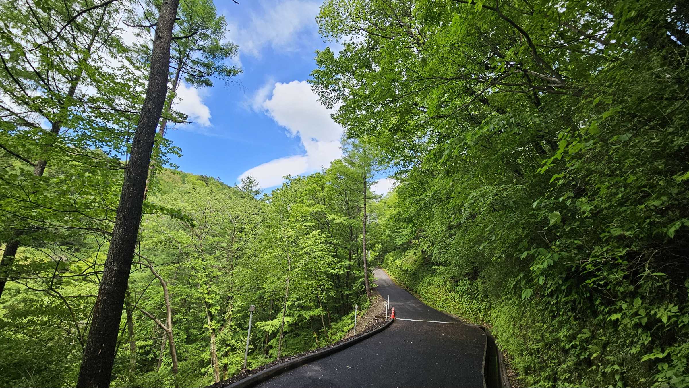 ここ、2年ぐらい前に道路が崩落したところです。最近ようやく復旧しました。