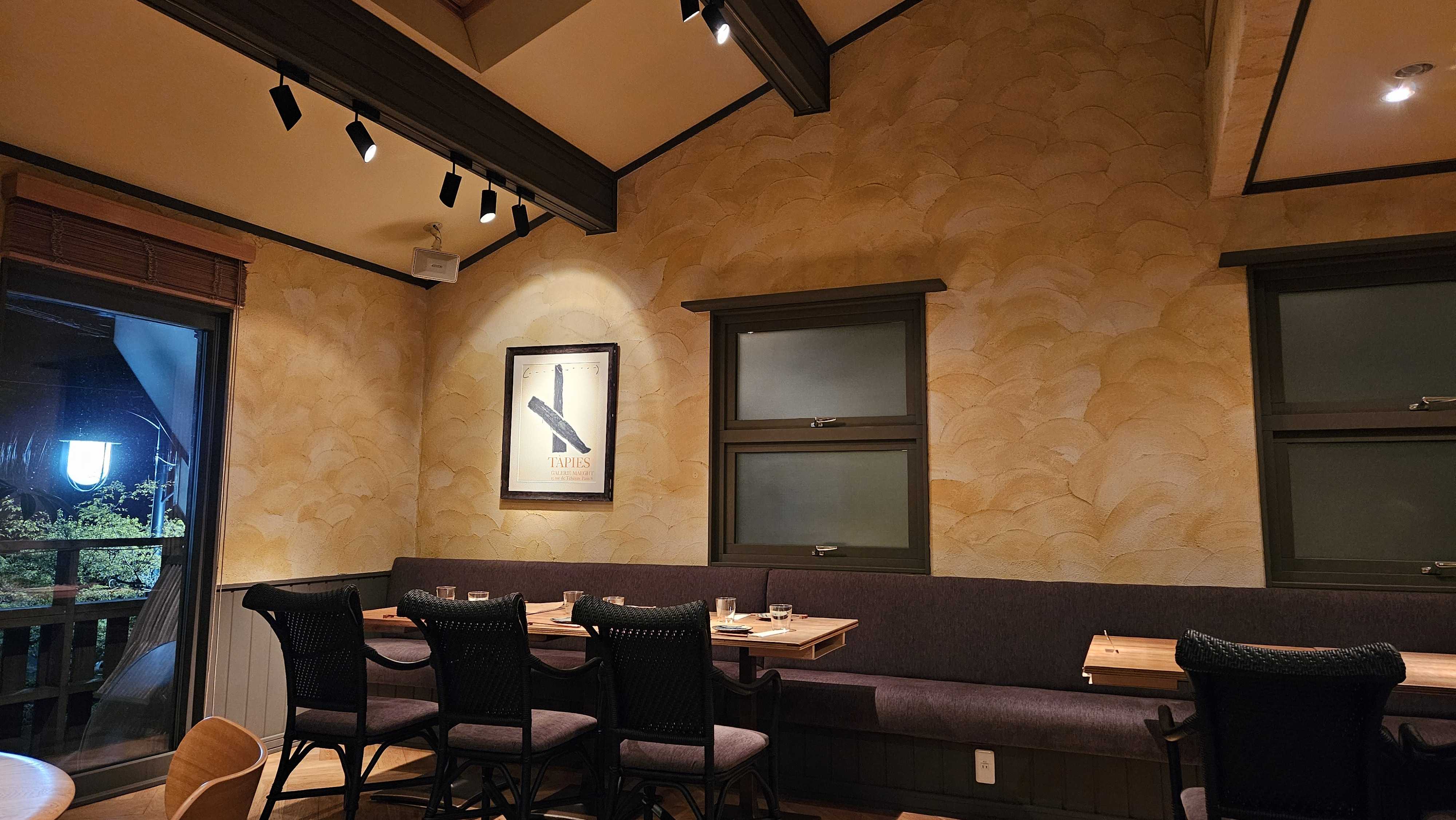もともとのお店のものを活用しながら自分たちで和の雰囲気も作ったそうで、案内された席は残念ながらちゃんと写真撮るの忘れたんですが、左下にちょっと写ってるイスとテーブルは居心地のいい場所でした。特別に何席か置いてるそうです。