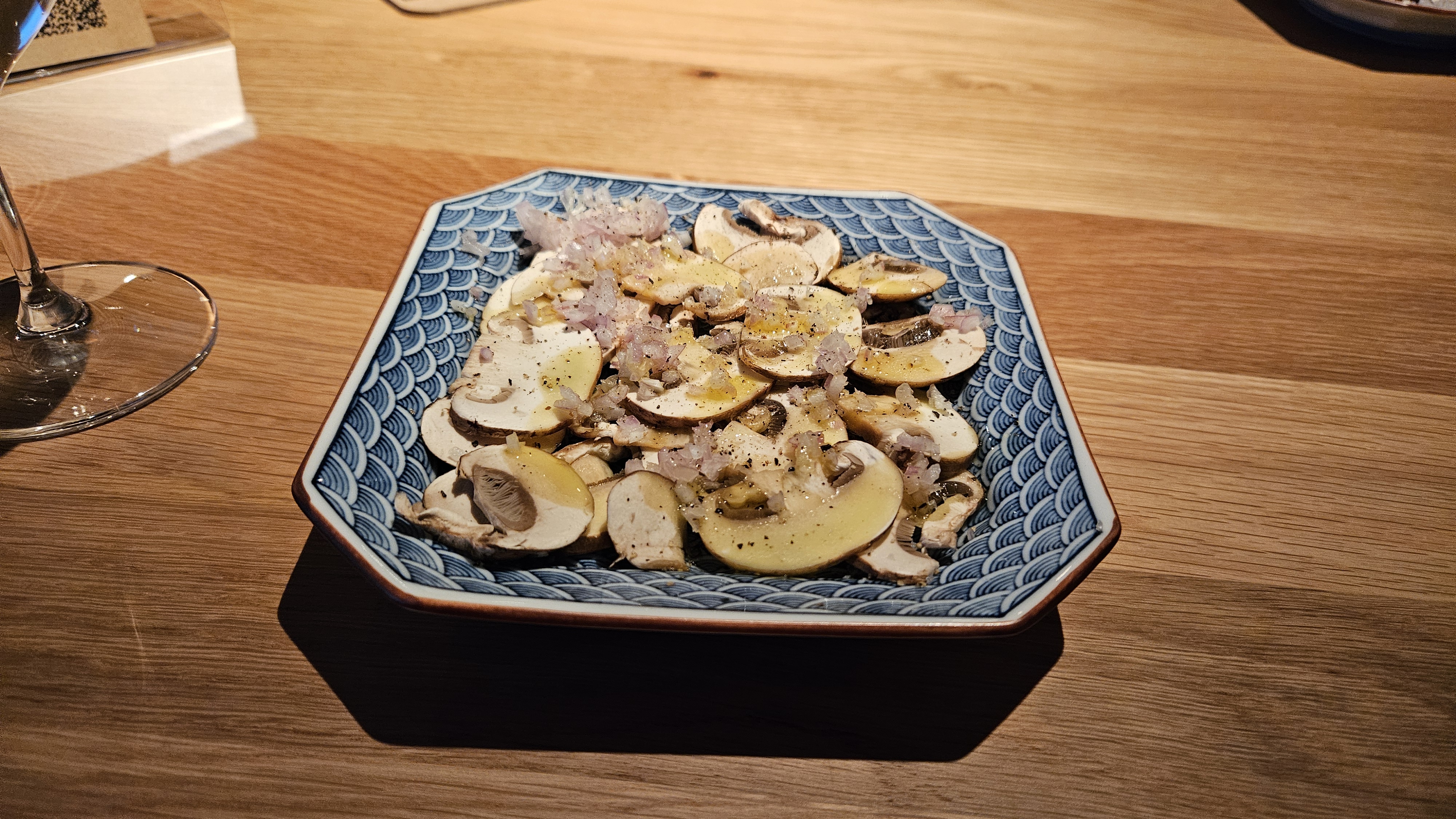 これ前から大好物!生のマッシュルームにオリーブオイルと塩というシンプルながら素材がおいしい逸品です。