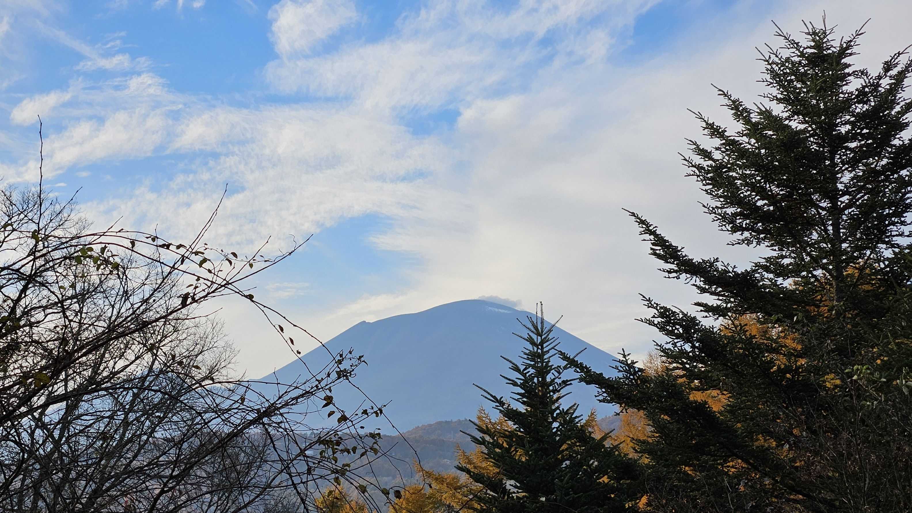 火曜日に初冠雪が発表された浅間山ですが、長野側は南斜面なのでこの時期降った雪も解けてしまい、白くなったり茶色に戻ったりしながらだんだん全体が白くなっていきます