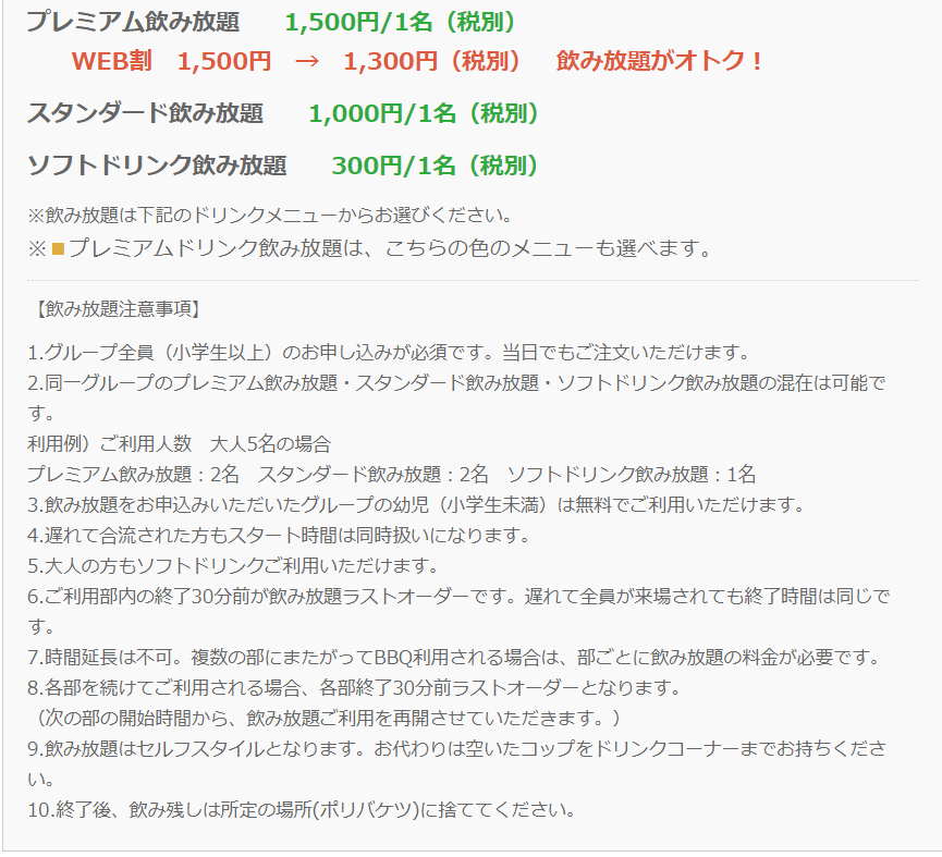 手ぶらプランを利用なので、何も用意する必要が無い。飲み放題プランもあったが、ソフトドリンクの飲み放題は全員にサービスだったので、アルコール類は、近くのスーパーで調達。