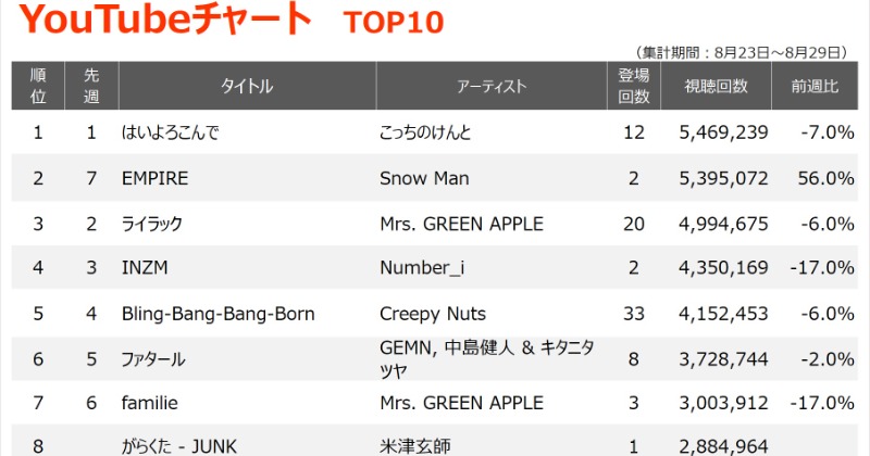 【YouTubeチャート】こっちのけんと「はいよろこんで」V2、アカペラバージョンも公開 | ORICON NEWS https://www.oricon.co.jp/news/2343185/full/