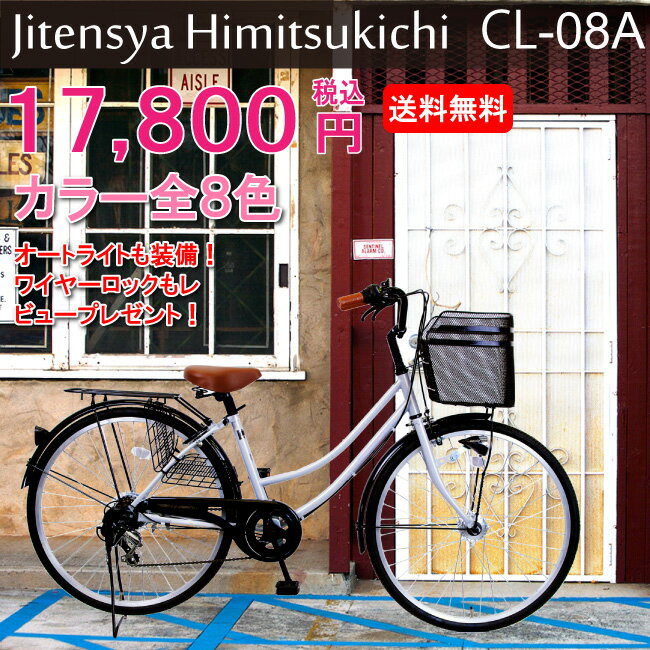 【送料無料】【CL-08A】カラー軽快車6sママチャリ/シティサイクル/6段変速付オートライト...