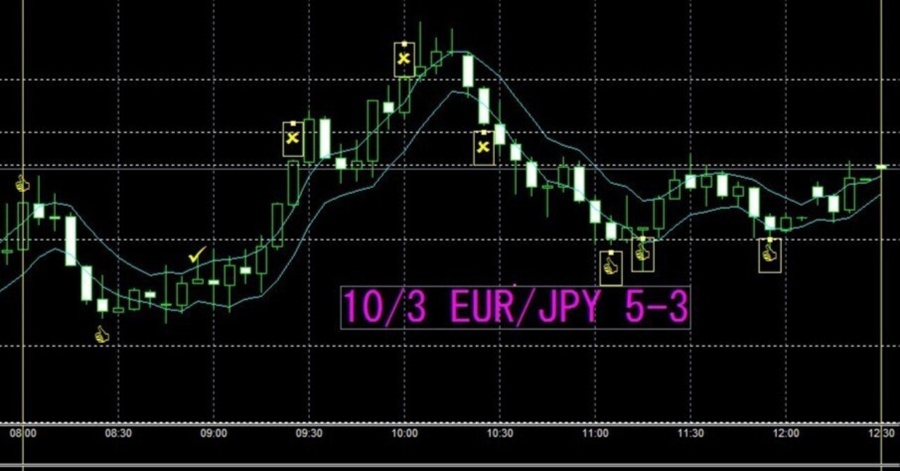 聖杯(仮)手法の方は今日は一切裁量なし、どんなにサインの出る場所が、サポレジラインに近かろうと遠かろうと「サインが出た足より上下で確定したら逆張りエントリー」として自分がEAになったつもりで、なんのラインも見ずに入ってみました。まぁ敗け越すことはないだろうと思ってましたが「聖杯」と言うにはちょっと納得いかない勝率でした。