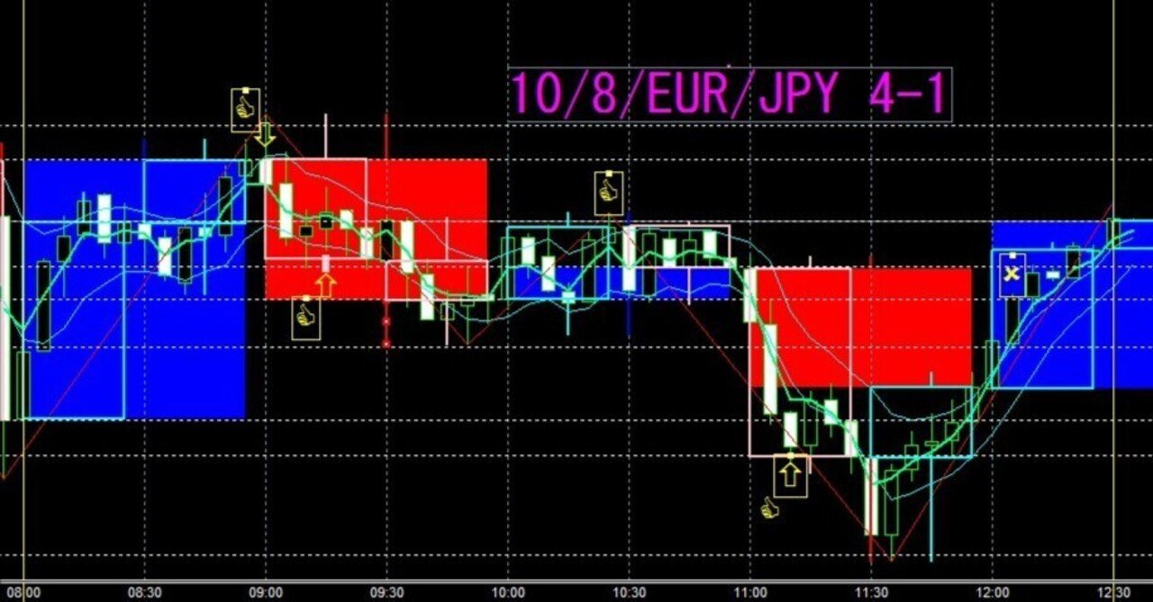 のべ8勝3敗で、負けるエントリーポイントが一箇所重なっていました。手法①だけなら5勝0敗勝率100%でしたよね。1210時と1215時のところが手法②βで入って敗けて手法①で入っていれば勝ってるところです。私は1210時でエントリーして敗けたので1215時は手法①で勝てたポイントですが見送ってます。