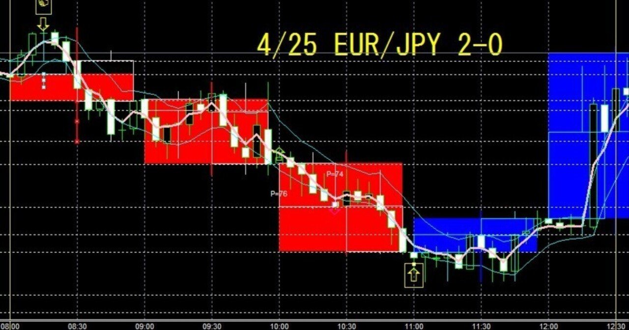 いつもの勝ち。12勝8敗 勝率60.0%利益24400円+α/EUR/JPY/4/25/0800時~1230時 |★のりまき★本日の結果 手法①且つ手法②β:2勝0敗 勝率100%(別々2勝1敗) 聖杯(的)手法:3勝3敗 勝率50.0% 聖杯(的)手法の抑え手法:7勝5敗 勝率58.3% のべ12勝8敗。今日は抑え手法が仕事してます。最後の10分で急な動きがあって、エントリーサインひとつ見送ってしまいました。ここも入っていれば勝ちでしたが・・・・ 0800~0930…note.com