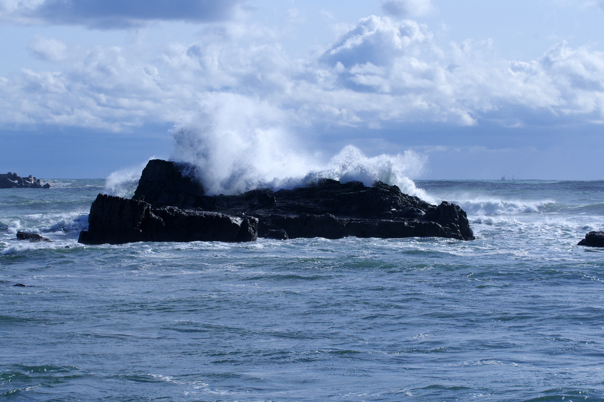 今日は風が強いので黒生海岸の波も高め。