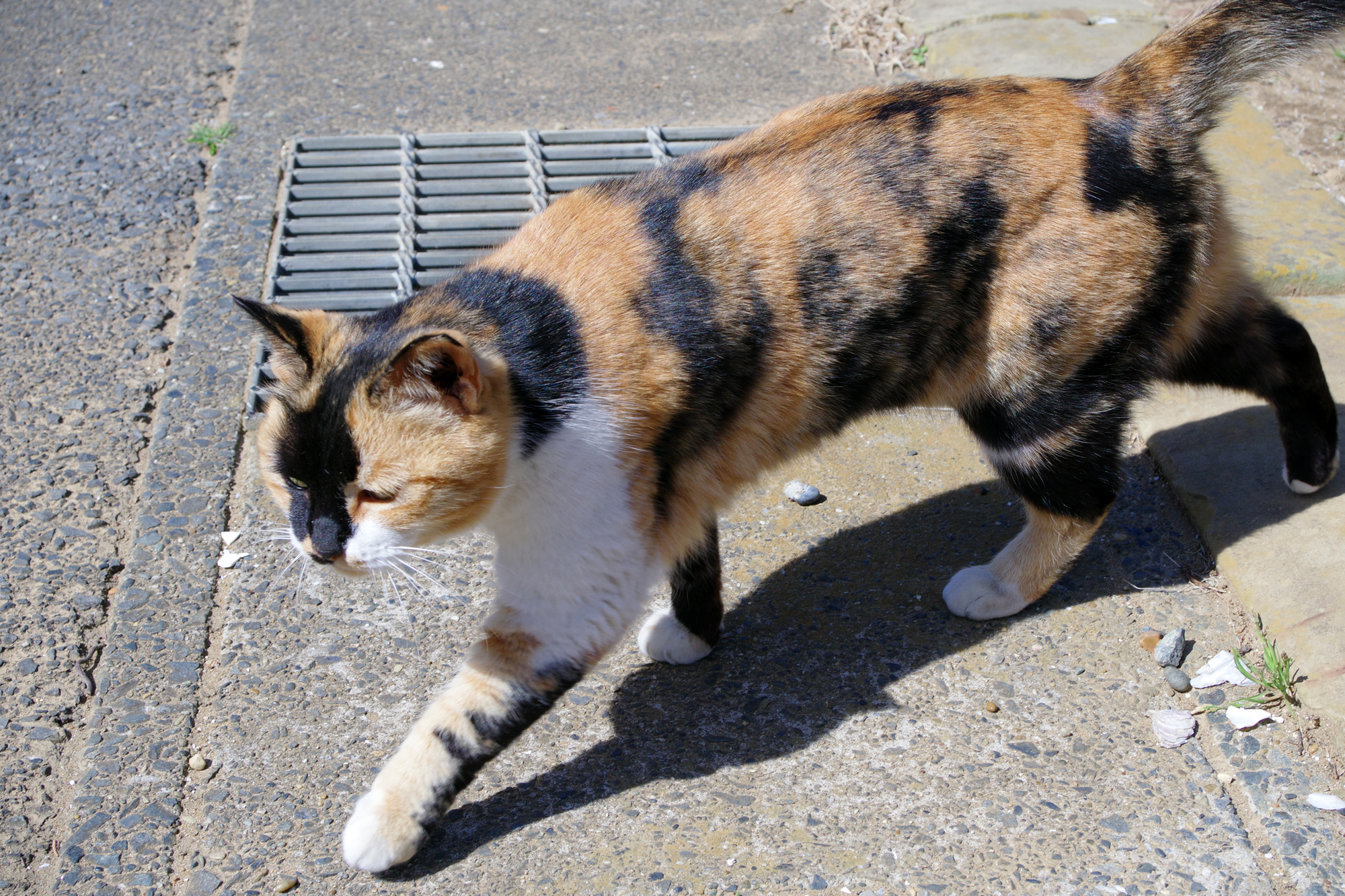 歩いてる途中で猫が寄ってきました。ご飯でも欲しいのかな?
