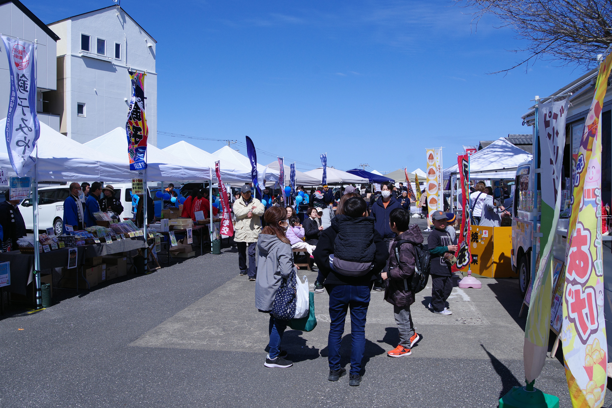 境内は露店(銚子マルシェ)でいっぱい。人も多く賑わっています。