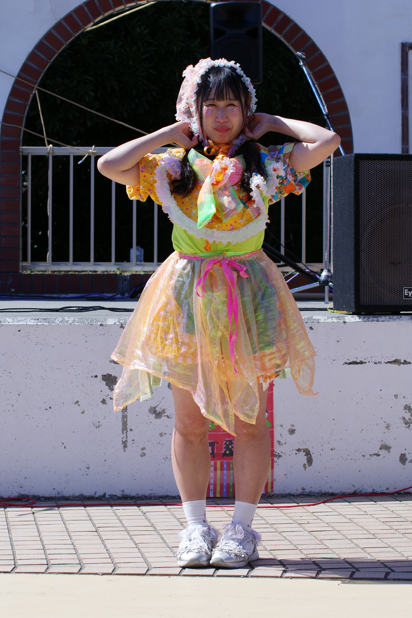 車内も明るくなり開放から1.2段絞った状態で速いシャッタースピードが切れるのですが、制服が真っ黒な分、白飛びしやすいのも難点です。