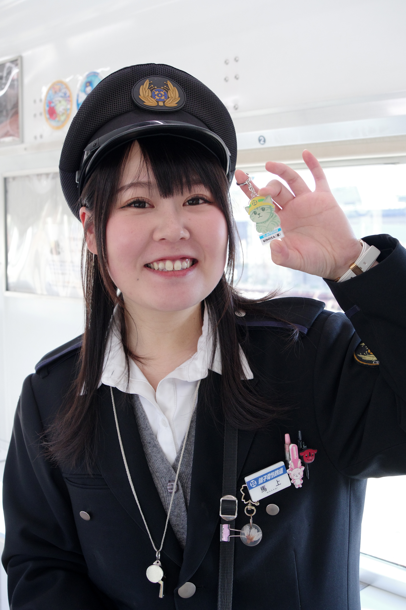 銚子駅車内にてお客様対応中。
