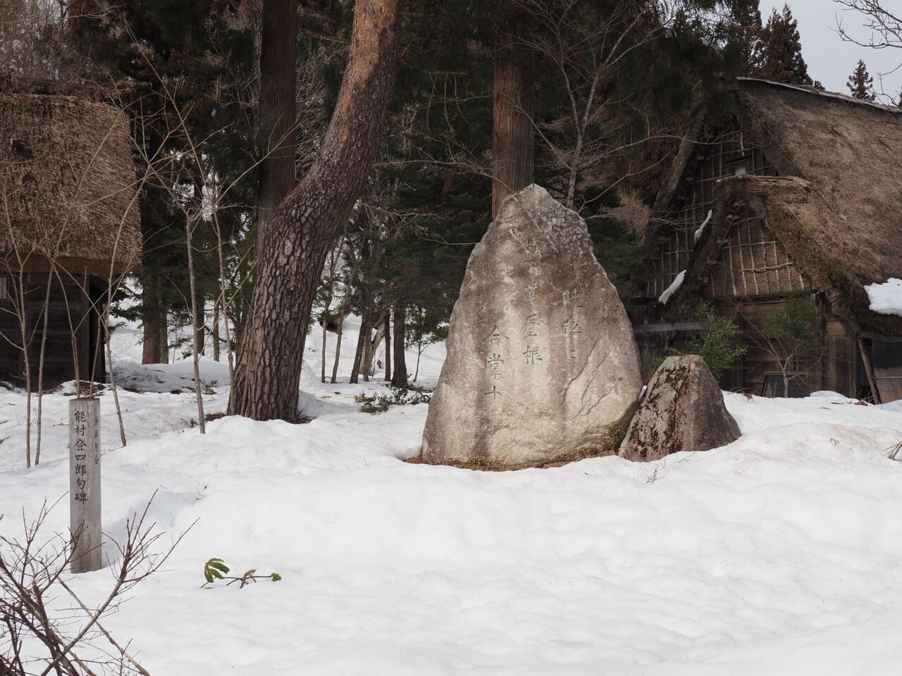 俳句の碑です 作者の能村登四郎は白川郷 合掌造り集落を こよなく愛したんだそう