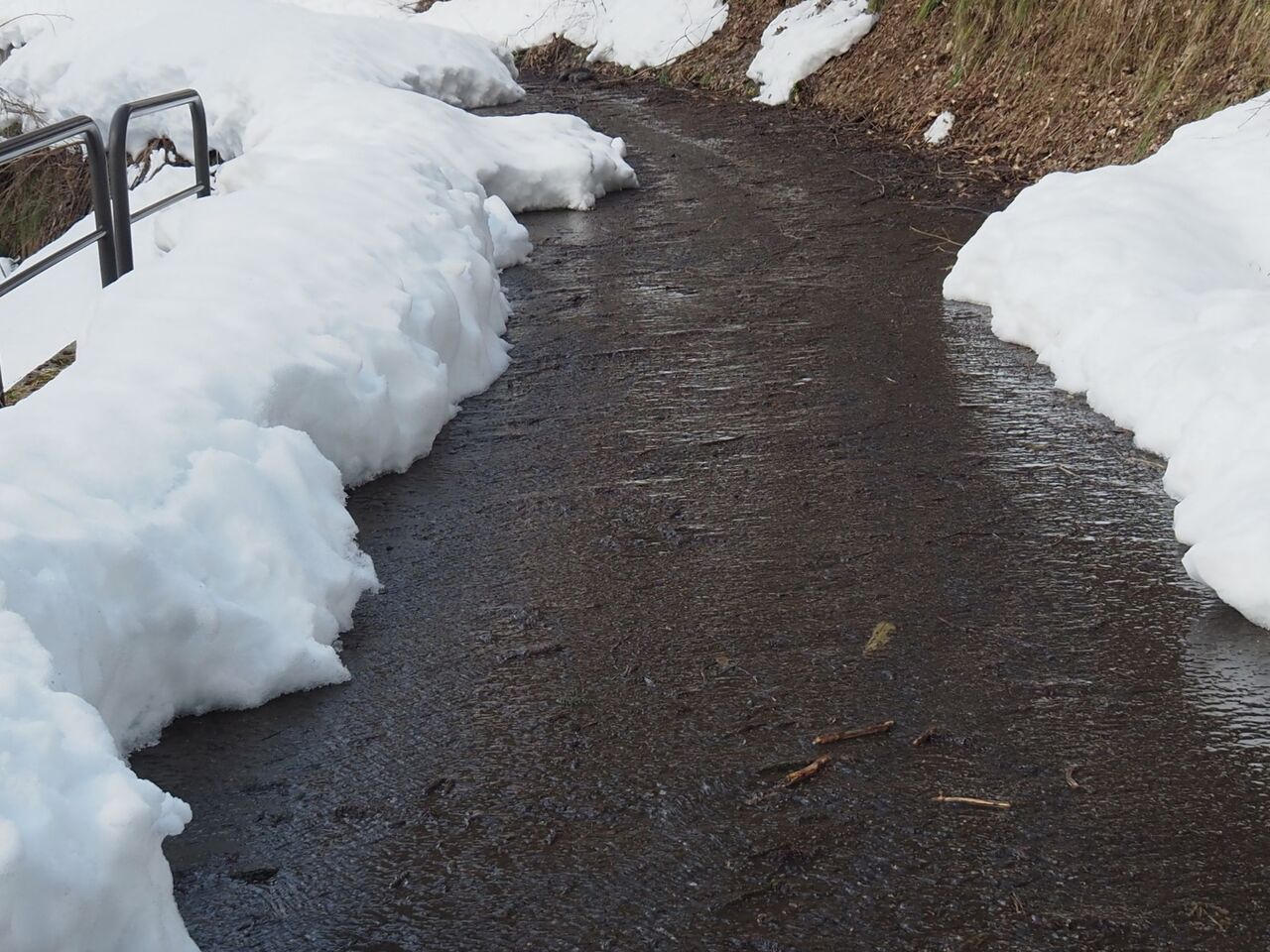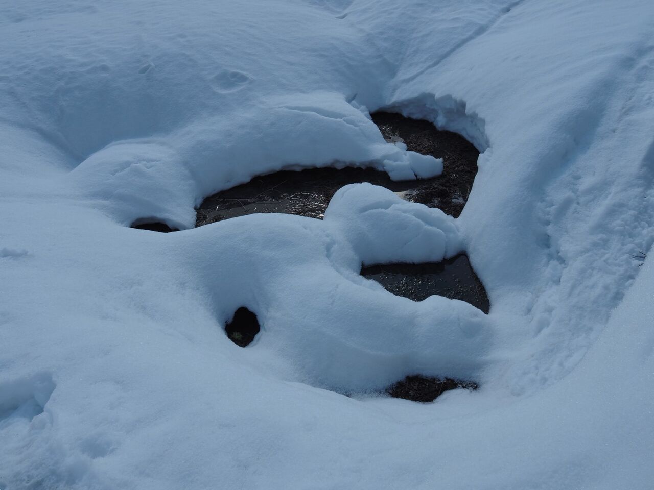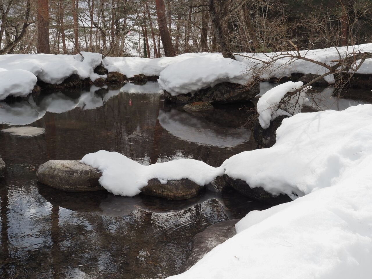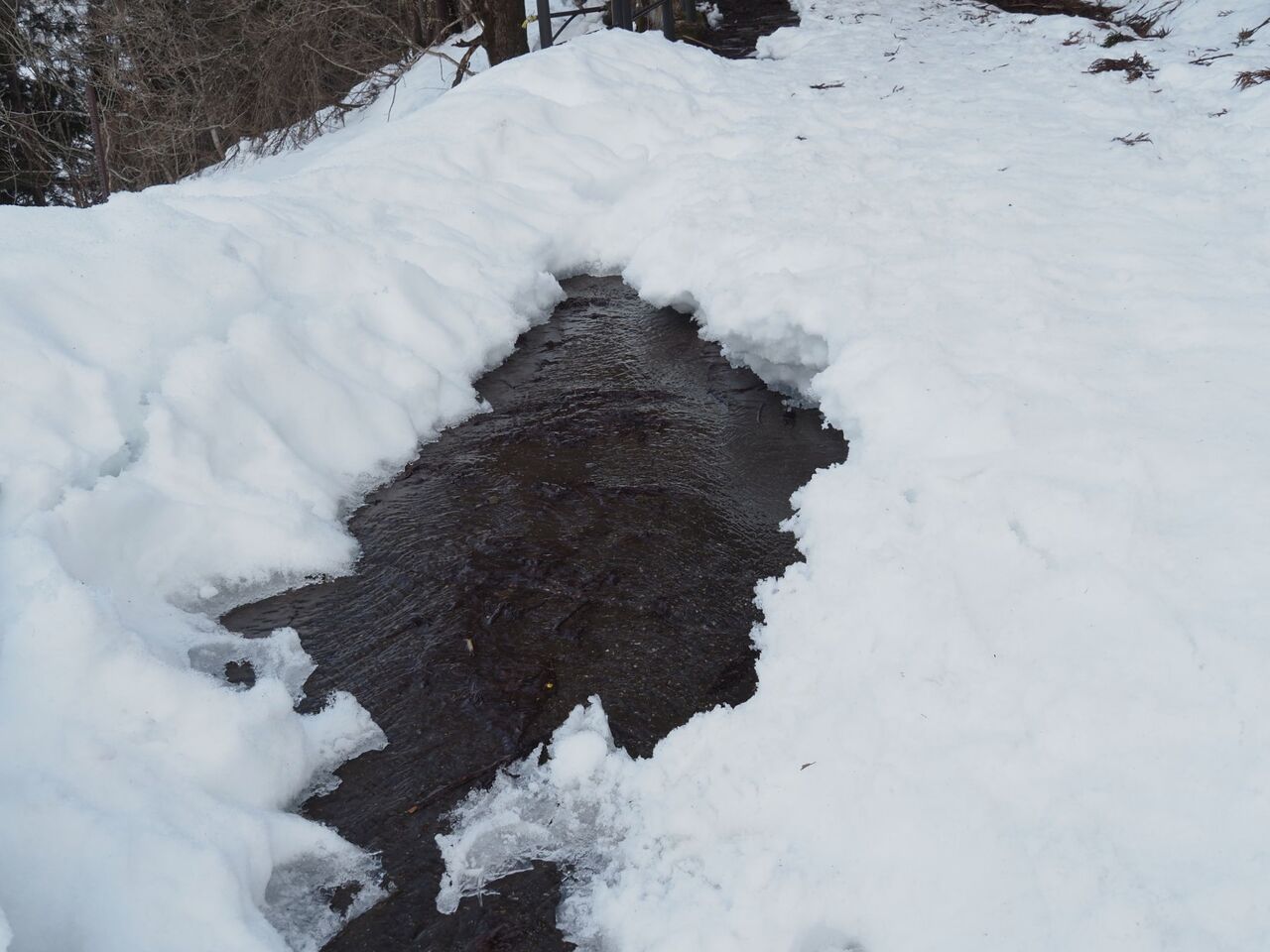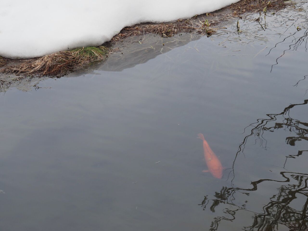 これは全く無し 落ちた雪でしょうか 水辺に たんまりと