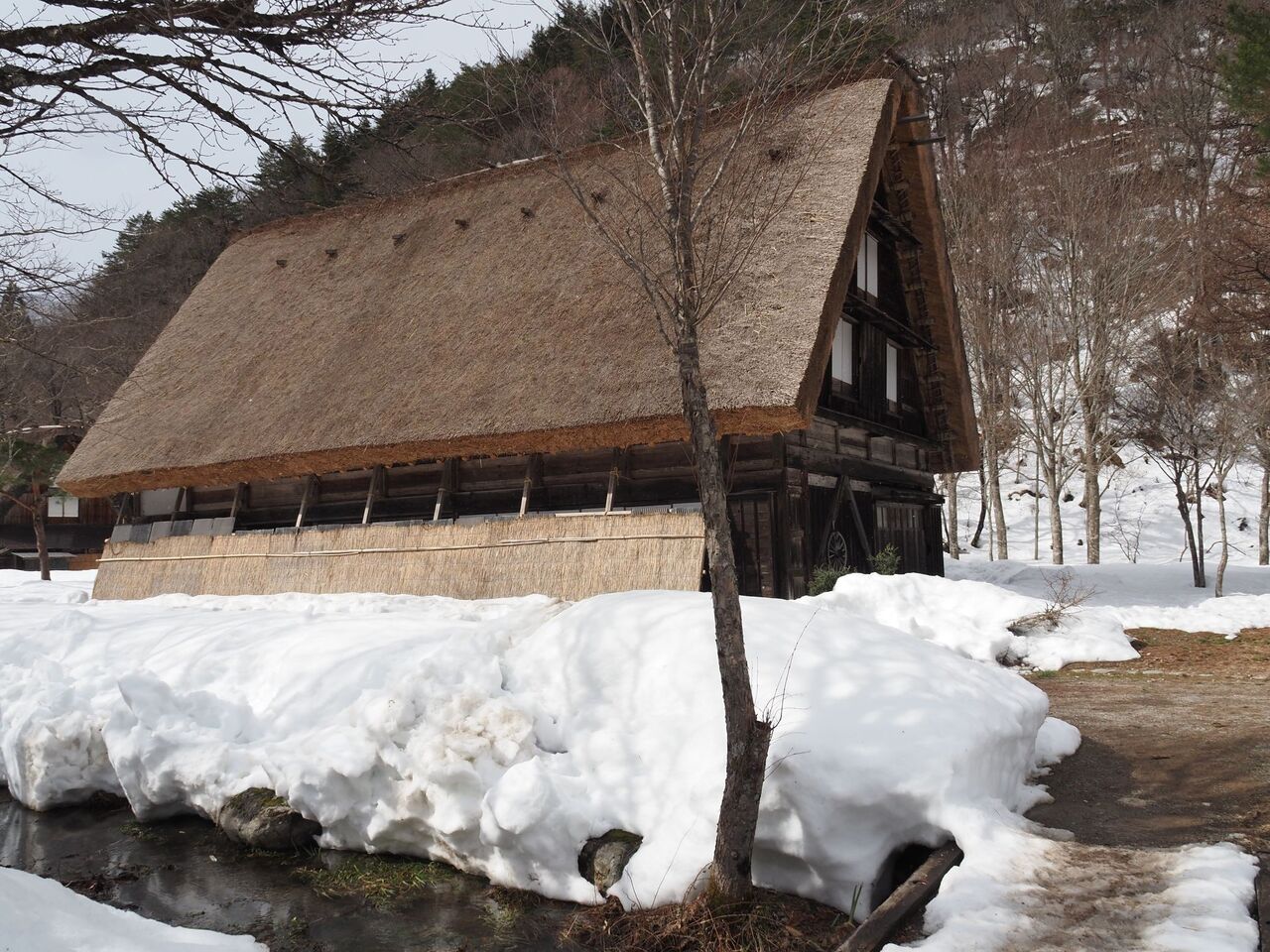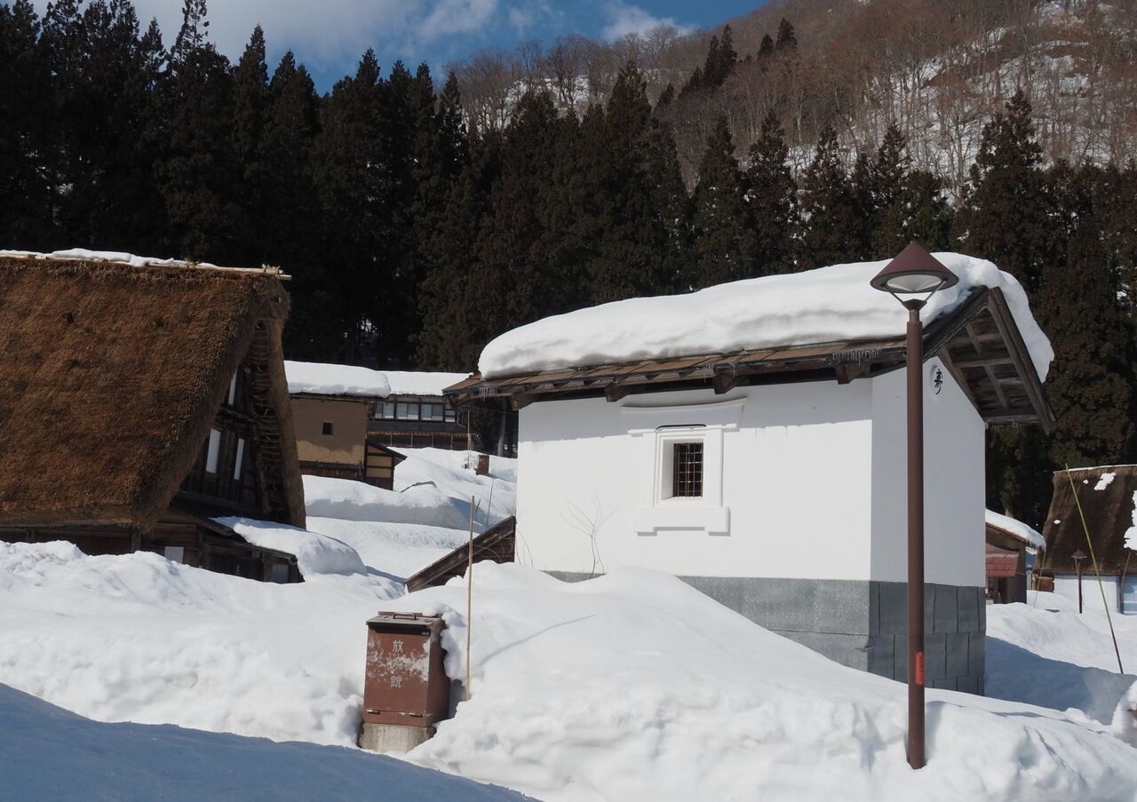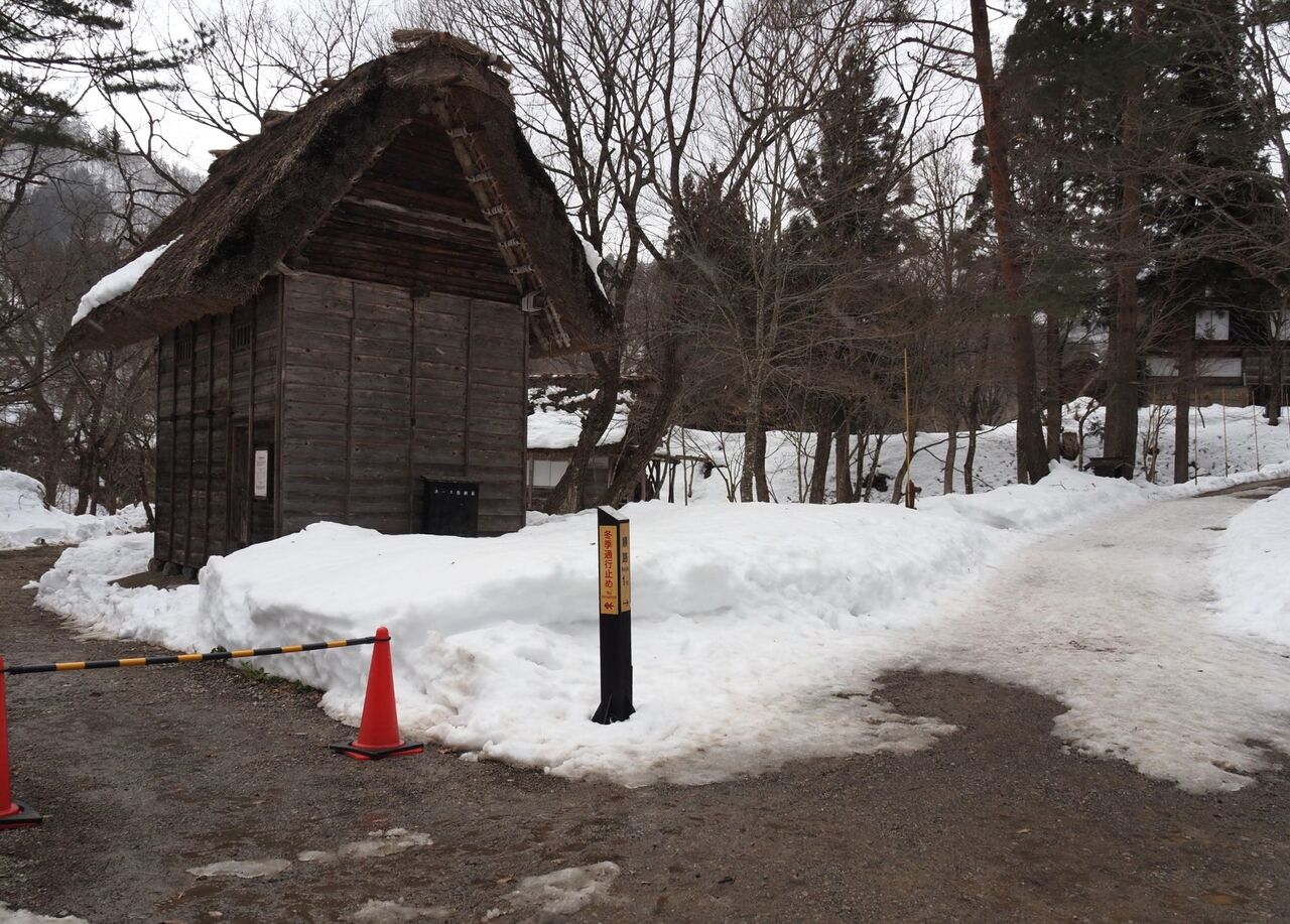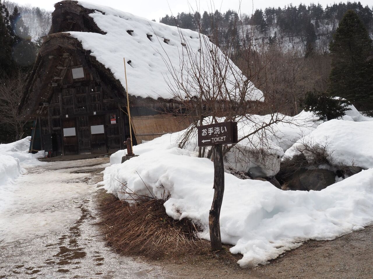 トイレも合掌造り 屋根の雪は随分と残ってます