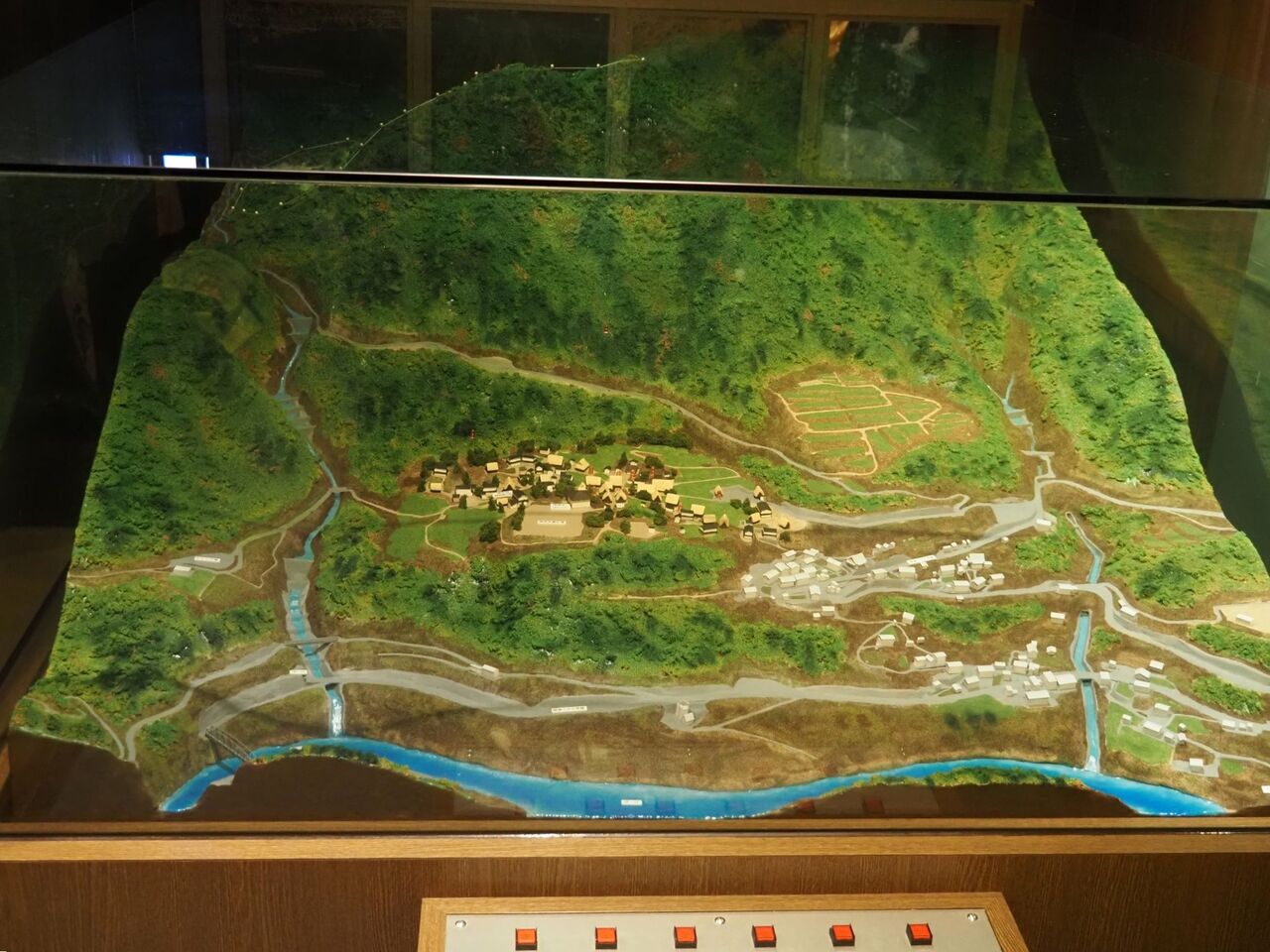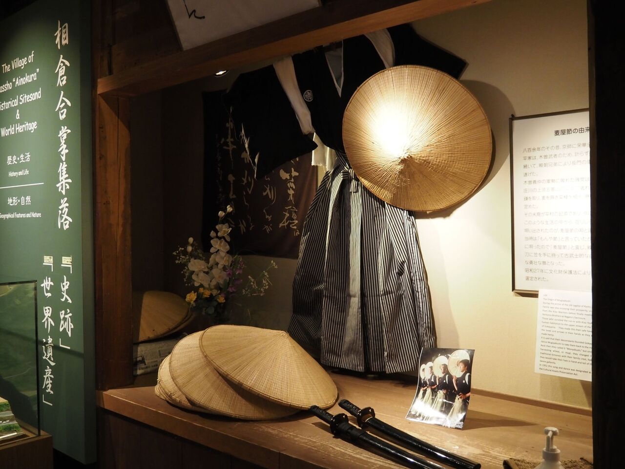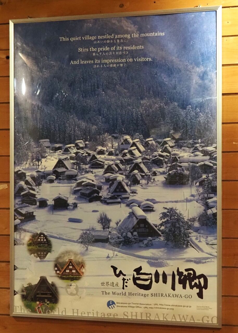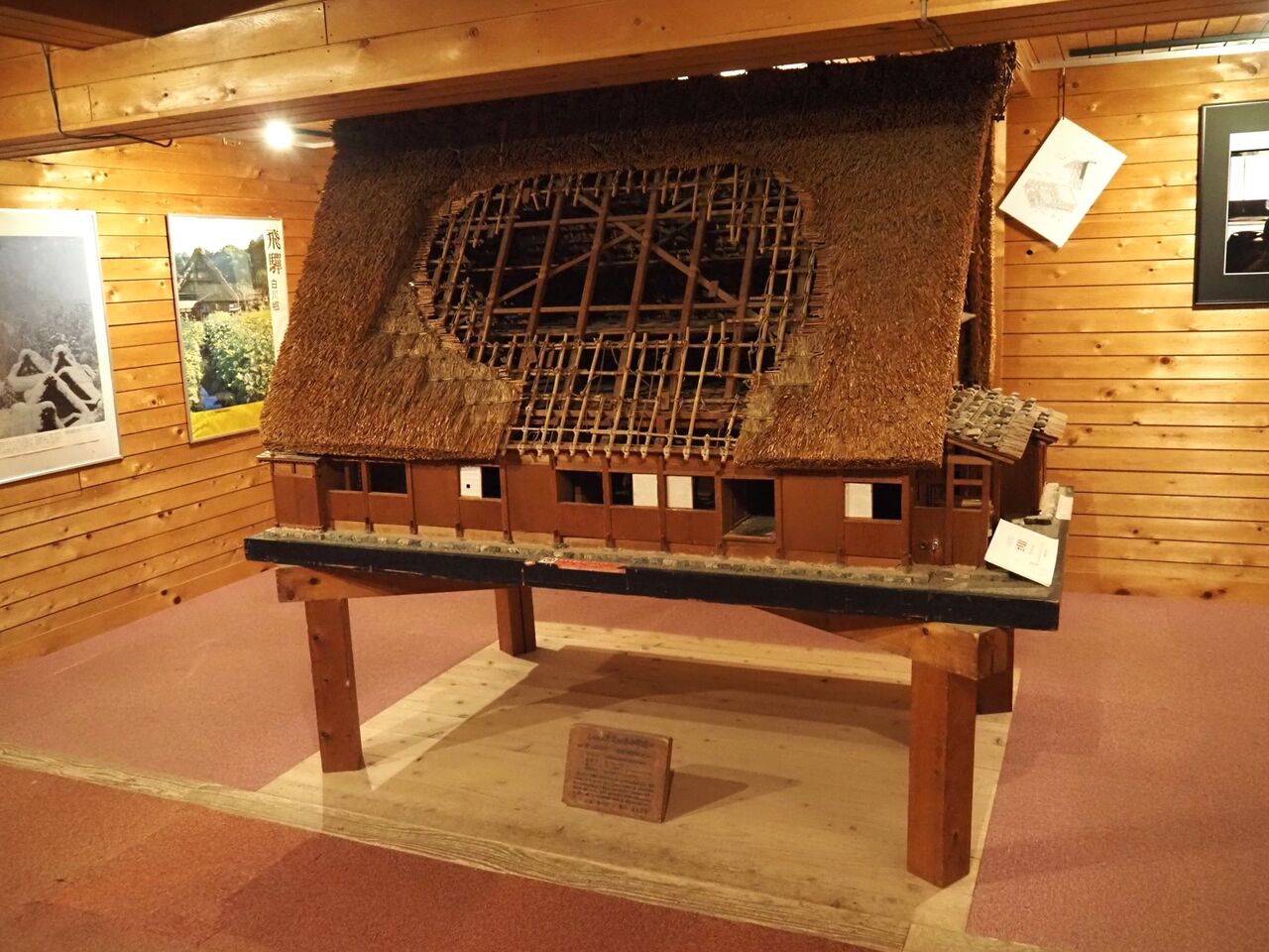 受付棟も大きな合掌造りで 内部には 構造模型の展示や 白川郷の観光ポスターが