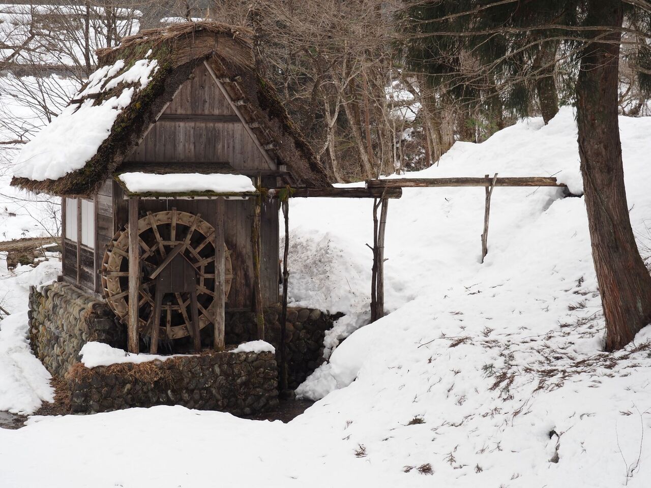 水車小屋ですが 雪が積もると 水を流せない感じで冬は休業なのでしょう