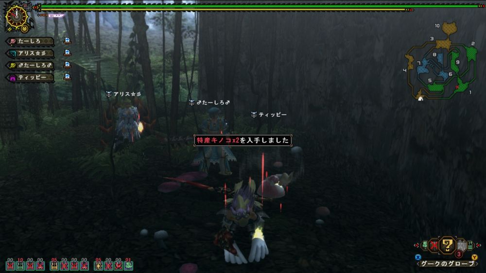 グークのグローブを持ってたら、エリア1のキノコを漁ると