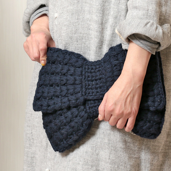 リボンというキュートでフェミニンなフォルムですが、ニットで作られているからなのか、どこか素朴でナチュラルな風合いがきっと惹かれるポイントなんだろうな。