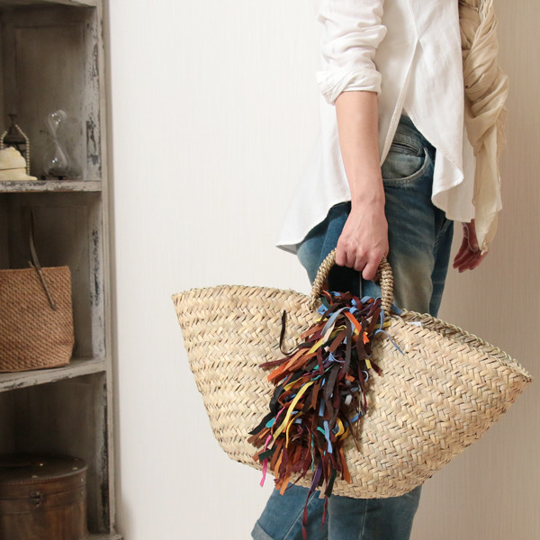 ベーシックなかごバッグにフリンジが付いただけでこんなに素敵になるんです☆