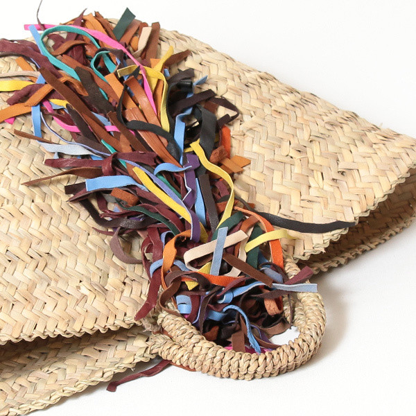 カラフルレザーのフリンジが魅力的なかごバッグ♪