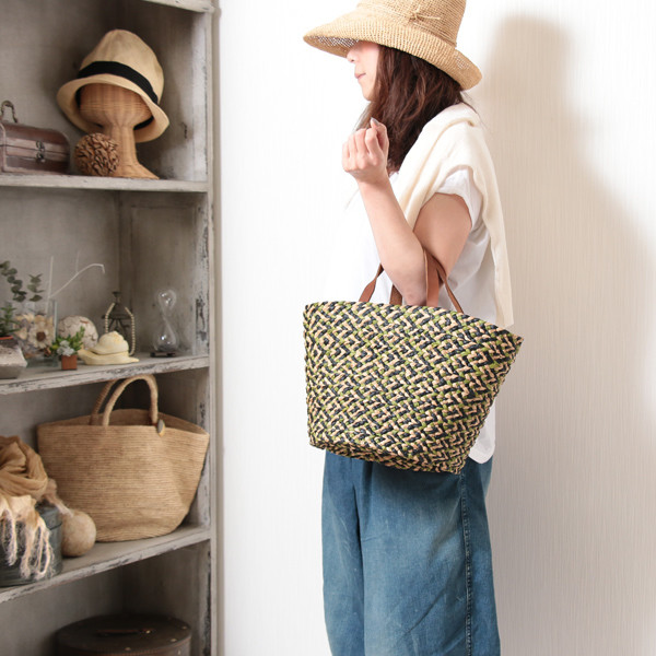写真はサンアルシデのかごバッグ「BOIS CHERI BAG S (NOIR×OLIVE×THE)」。
