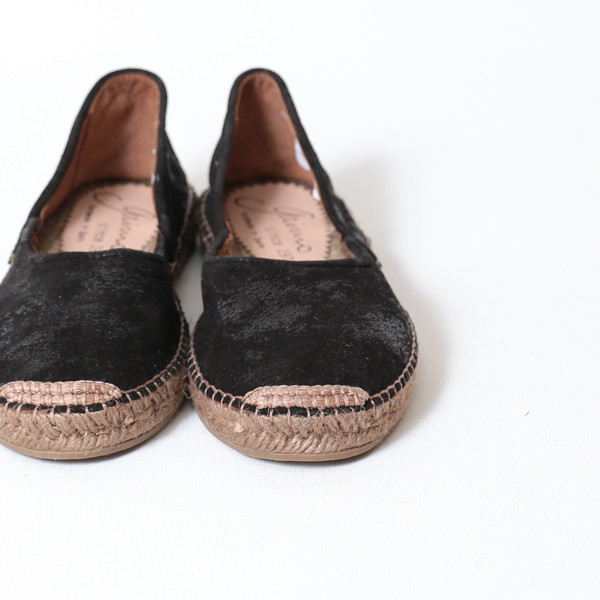 ブラックでもすこしのキラキラとジュートで季節感ある足元に♪